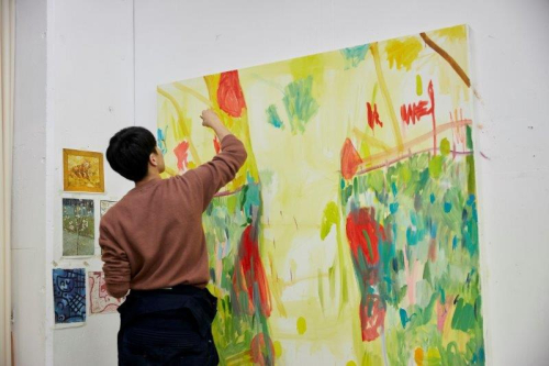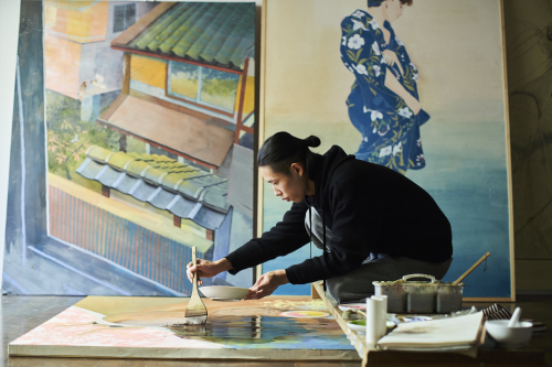 伝統ある京都という土地にあり、自然に囲まれ、四季の移ろいを感じるキャンパスは、日本画を学ぶのに最適な環境です。岩絵具やニカワなど日本画特有の材料や用具の使い方を習得し、植物の栽培を体験する機会も設け、日本画を描くために欠かせない感性や、生命の尊さを感じる力を養います。また、対象と向き合い、植物や動物を繰り返し写生することで本質を捉える力も鍛えます。教員のきめ細かい指導のもと、必要な技術・理論を習得し、最終的には各々が独自の作家性を獲得することをめざします。