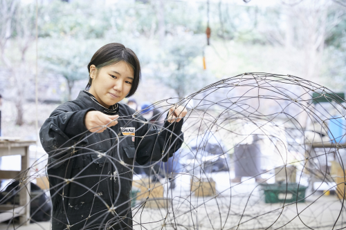 立体表現において大切な対象物のかたちを引き出すプロセスや型取り技法に加え、木、石、金属、樹脂、粘土、ガラスなどさまざまな素材の性質と扱い方を習得。作品を制作しながら多彩な素材に触れ、その特性を理解し、自分に合う素材を見極め、素材と技法を駆使した空間表現に挑みます。制作に没頭できるように、鉄工室や木工室、モデリングスタジオ、屋外作業場などの制作スペースを用意し、クレーンやフォークリフトなどの設備をそろえています。充実した環境のなか、技術や理論を実践的に学び、自分の作品をつくるための基礎を築いていきます。