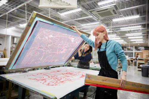 「複製できる芸術作品」をすべて版画ととらえ、浮世絵から写真まで、幅広い表現技法を学ぶことができます。木版、銅版、リトグラフ、シルクスクリーンの4版種を中心に、写真や映像などのデジタルメディアを研究することも可能です。アートとデザインの中間的な表現である版画の特性に注目して、作品を構成する力や、組合せ新たなものを作り出す力を伸ばすこともできます。また、4版種の工房をはじめ、写真スタジオ、暗室、紙漉き工房など充実した施設・設備があり、自由に創作活動を行うことができます。