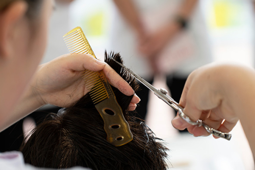理容科では、男女両方のヘアースタイリングを中心に、カラーリングやネイルなどの技術科目を学びます。