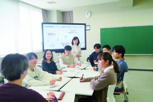 学びの柱は「市民と生活」「仕事と産業」「地域と文化」の3分野。現代社会が抱える課題を解決する力だけでなく、地域貢献できる実践力も養成します。少人数クラスをベースにしたワークショップ形式の授業でプレゼンテーション、ディスカッションなどの基礎を修得。企業訪問やまちおこしなど、企業や地域と実際にかかわる参加型のプロジェクトが豊富で、学生が主体的に取り組むことで“地域に学び、社会に生かす力”を養います。