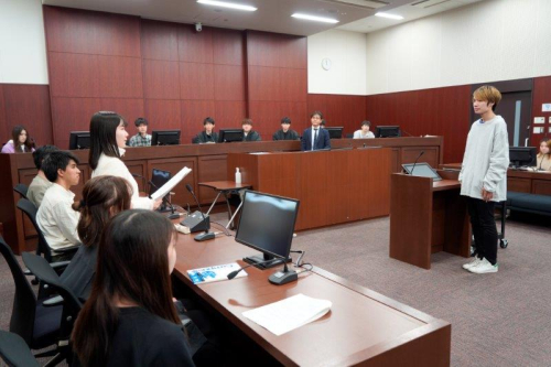 1年次に専門分野の基礎(憲法、民法、刑法、商法、政治学など)を学び、2年次より「法職コース」「行政コース」「企業法コース」の3つのコースから自分の専門分野を選択。裁判傍聴や刑務所見学、模擬裁判といった体験学修や現役の弁護士や司法書士を講師に迎え、生きた法学を学びます。