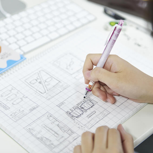 「プロダクト」とは、雑貨、家具、生活用品、文具、グッズ など、身の周りにあるモノのこと。そして、「プロダクトデザイン」とは、それらに形や色を与えることです。