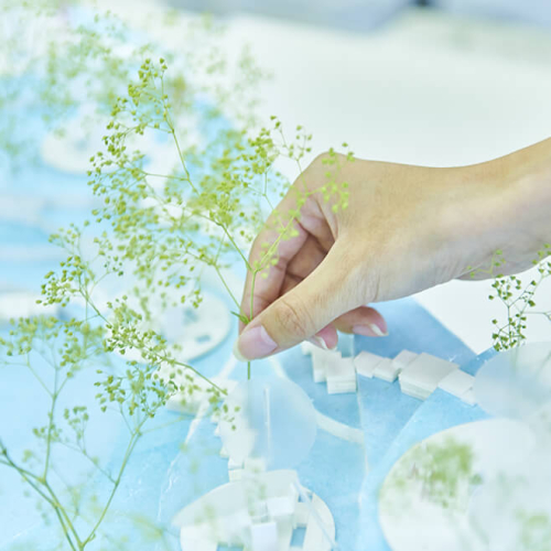 ショップや住宅などの施設から建築物、インテリアデザイン、さらにイベントや都市のプランニングまでを対象とし、講義や演習を幅広く展開してゆきます。なかでもスケッチや造形、製図、CADといった必須要素は3年間を通じて徹底的に指導。