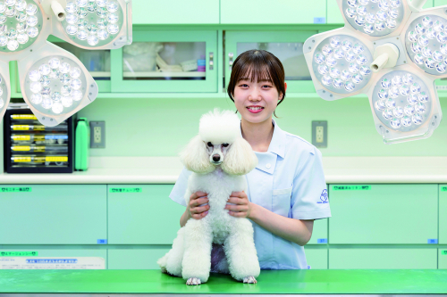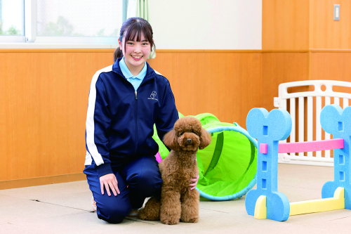 美容実習が大好きです。1 頭のワンちゃんを自分だけで仕上げられた時、達成感とともにやりがいを感じます。体育祭は、普段はあまり関わりのない学科の学生たちとも交流が深められる良い機会でした。難しいのは企業研究の授業。接客シミュレーションを行うのですが、お客様役の先生の質問に的確に答えるのが大変です。将来は、いろいろな犬種・性格のワンちゃんに対応できるトリマーになりたいです。