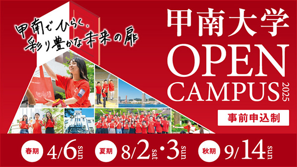 「来場型オープンキャンパス」は、春期(4月6日)、夏期(8月2日・3日)、秋期(9月14日)の4回実施します。全日程、事前申込制での開催を予定しています。当日のイベント詳細や申込み方法は、甲南大学受験生向けサイト「甲南Ch.」にてご案内します。