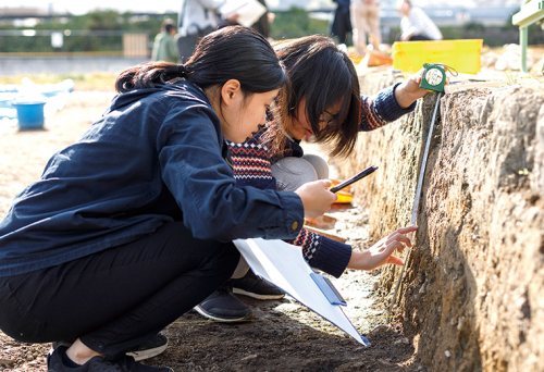 文化遺産に関する基礎知識から、石器の実測や考古学の基本となる遺物の観察法といった実践的で専門的な技術まで、考古調査に必要な知識を学びます。所定単位を修得することで2級考古調査士資格の取得をめざすことができます。