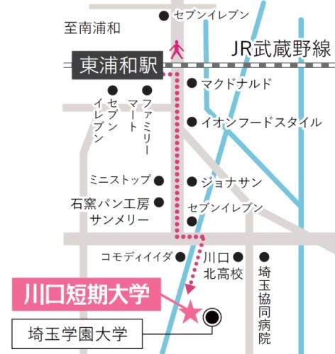 東川口駅から川口短期大学までのバスの所要時間は約9分です。
