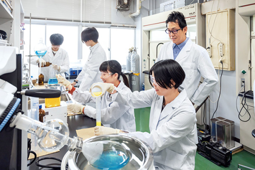 科学技術が日々進歩している現代において、化学系分野で活躍するためには化学の幅広い知識を持つスペシャリストが求められています。また同時に、社会構造の変化に柔軟に適応するため、異分野の専門家とのコミュニケーションができるジェネラリストとしての実践的な能力も必要とされています。最先端の装置・設備を用いた総合学習型の実験や実習を通じて、化学系研究開発職としての実践的スキルを身に付けます。