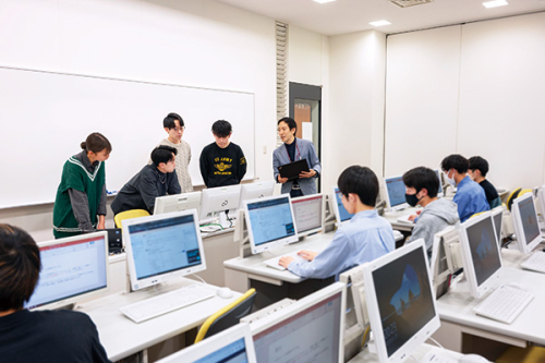 産業経済学科では、起業家精神・経済理論の考察にとどまらず、調査・分析・実証などを実践的に科学的に学びます。学内外での実習やフィールドワークも多く、企業や組織のニーズでもあるコンピュータ情報やデータベース構築等のスキルも修得した、真のエキスパートを育成します。なお、本学科では、「起業家育成プログラム」と「地域イノベーションプログラム」という、選択の自由度と専門性が高いカリキュラムを提供します。