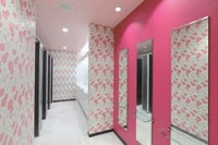 可愛いクロスが印象的!全身が映る鏡や大きな洗面台が人気です。