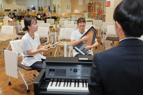 医療現場はもちろん、地域社会の高齢化、障害児・者の身体的・精神的・社会的な自立支援をするとともに、QOL(生活の質)の向上をめざす作業療法士を育成するために、これまでの作業療法評価や治療に加えて、演奏や曲作りを通して機能回復を図る音楽療法や、おもちゃ作り、ダンス、園芸などの創作活動を取り入れた「アート科目」を数多く用意しています。