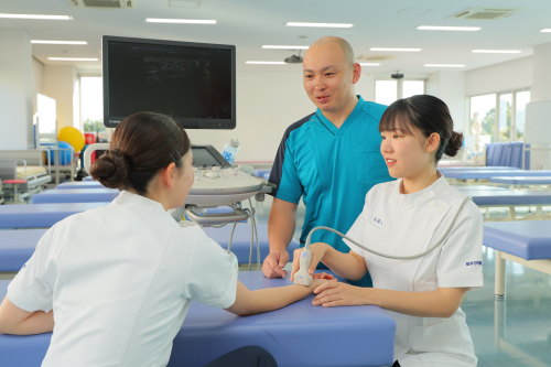 また、本学では、医療施設など臨床現場における実習に重きを置き、1年次からリハビリテーションセンターや福祉センターを見学します。また、3年次の9月には地域理学療法学実習として地域リハビリテーション施設で1週間、3年次後期から4年次にかけて評価学実習5週間、総合臨床実習を計12週間、医療機関等で行います。急性期~維持期までさまざまなリハビリテーション・理学療法の展開現場で実践的に学びます。
