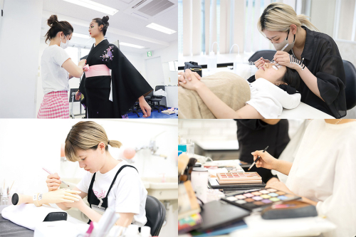 2年間でメイクやネイル、着付けなど幅広い分野の技術を身に着けます。またカリキュラムにはカット・カラーなど美容師に欠かせない基本の技術に加えて、アイラッシュ、まつ毛カールなどサロンの現場で実践力となる技術を習得。美容師国家資格を取得を目指しつつ、美容をトータルに学ぶことができます。