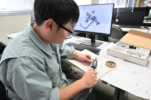 CAD/CAM/CAE、NC加工、シーケンス制御、メカトロニクス設計、測定・計測等のものづくりに必要な知識、技術、技能を学習します。 さらに製造業で最も重要なことである目的を持った製品を生み出すことや、 生産方法、 生産手順の構築とそれに合致する生産設備のシステム化などを、実際の企業と同じように、チームで創り上げていく手法を実習を通じて身につけます。