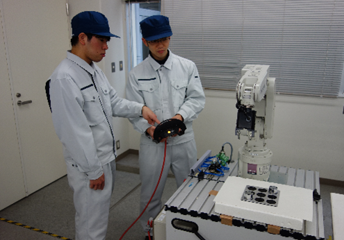 自動車や家電製品等の様々な製品は、工場でロボット等によるオートメーションによって製造されています。メカトロニクス技術科では、①メカニクス(機械工学)、②コントロール(制御工学)、③エレクトロニクス(電気・電子工学)、④プログラミング(情報工学)等の技能・技術を習得します。