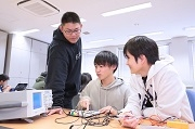 生産電子情報システム技術科では、スマート・ユビキタスネット社会の発展に向けて、①複合電子回路設計、②ネットワークシステム、③組込みシステム技術を3つの柱として、“ものづくり”を通して技能・技術をシステム等に反映させることのできる実践技術者を育成します。