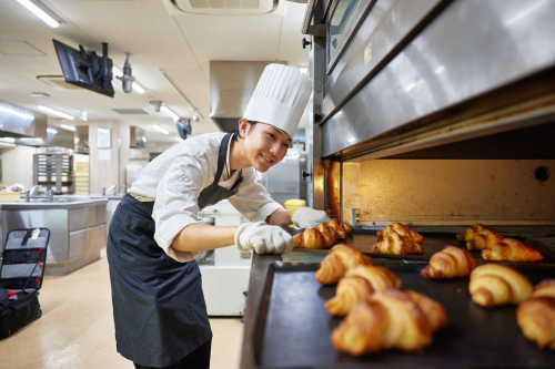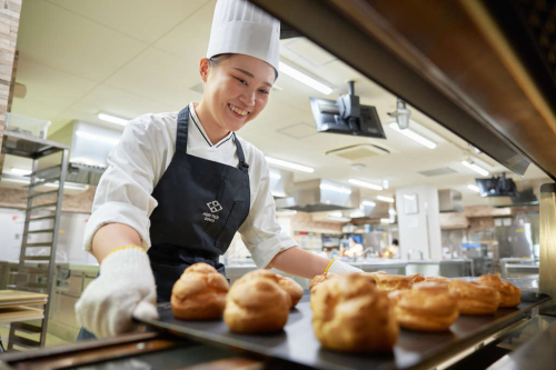 小麦粉や生地の扱いを徹底して学び、誰もが美味しいと感じて頂けるパン作りができる人材へと成長できます。企業や学内など、様々なシーンでの販売演習を繰り返す事で、お店で販売されているような商品を手早く生み出せる技術が身につきます