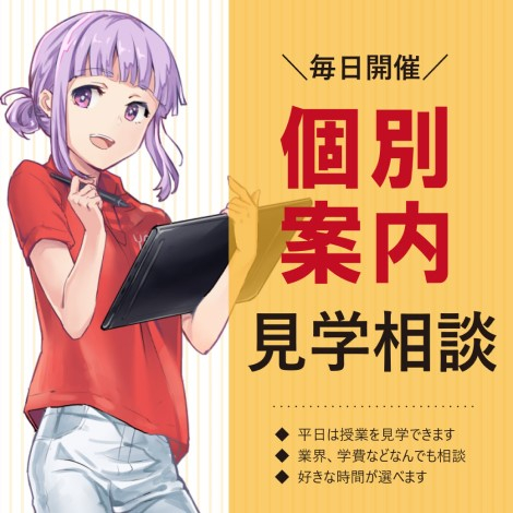 入学の前に代アニで学ぶイメージをつけられる“校舎の見学や入学相談を行います!