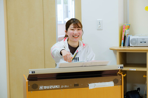 保育士資格、幼稚園教諭二種免許、音楽療法士資格が取得でき、さらに保育士資格取得+1年で介護福祉士や、併設の京都華頂大学に編入して社会福祉士や小学校教諭の免許取得もめざせます。