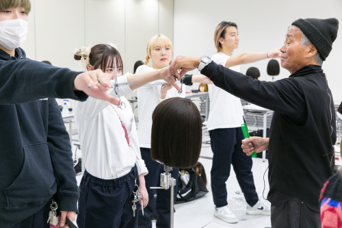 プロの美容師対象の講習を在学中から受講できるプロテクニック講座。KANBIの顧問であり世界的アーティストの川島文夫先生から直接学べるカットコースや山口啓メイクアップセミナー、新井唯夫ヘアアレンジセミナーなど、一流クリエイターから直接指導を受けることができます。