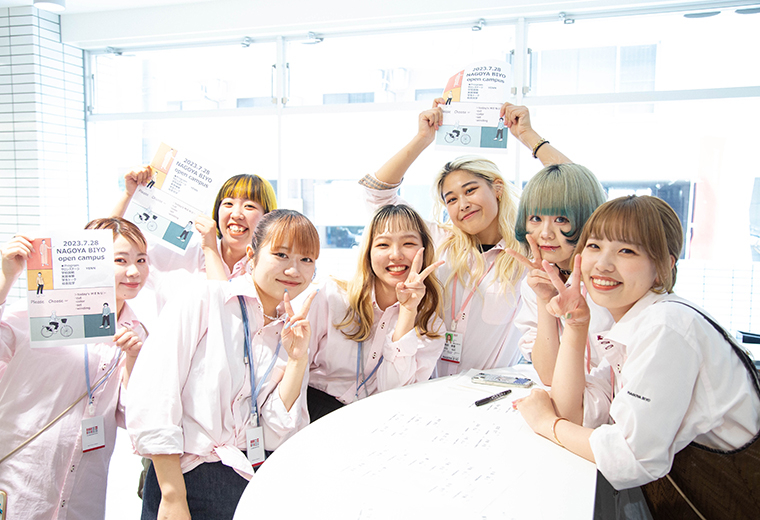 名美だからこその超豪華な人気サロン(JURK、CLENN、wit、teto hair、’AXIS、ICI、BUDDY HAIR、loje、CLEAR of hair、LOREN、ほか)が来校して、サロンクリエイションの公開授業を実施。