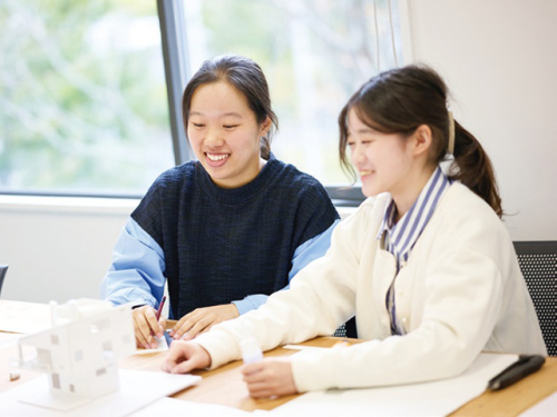 KASDは、「建築を学ぶ楽しさ」を大切にしながら、将来、建物を外側からデザインする力と、快適な「暮らし」を創るインテリアの知識を兼ね備えたプロを育成する「実学主義」を教育の柱としています。