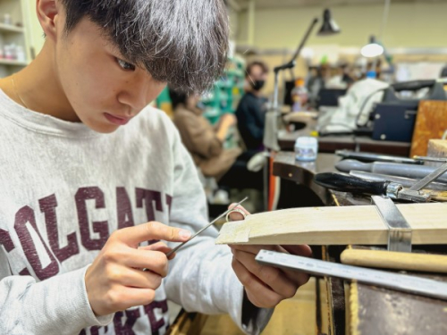 本格的なシルバーアクセサリー、ジュエリーの制作方法を道具作りから学んでいきます。それぞれの素材に適したデザインと加工方法、2年次にはオリジナルブランドを立ち上げるためのノウハウを学んでいきます。
