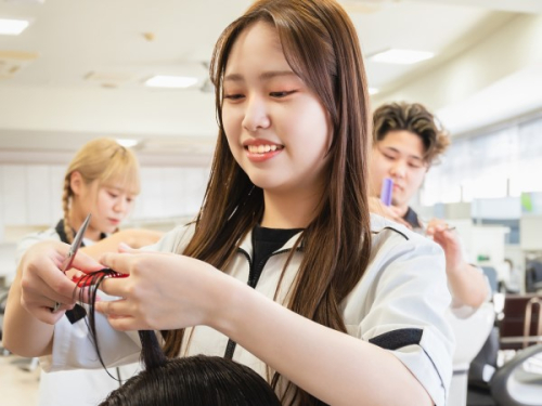 トレンドも目まぐるしく変わってゆくこの業界で活躍し続けるために、基礎技術はもちろん、最新のトレンドを学びます。美容師国家資格の取得を目指し、1年次では「PAUL MITCHELL」などの世界基準のディプロマや資格を取得。2年次でヘアカラリスト検定、まつげエクステ、着付けなど、美容業界で働くためのスキルを余すことなく身に付けることができます。