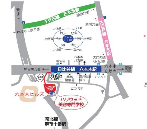 六本木駅直結で、天候に左右されず快適に通学できます。