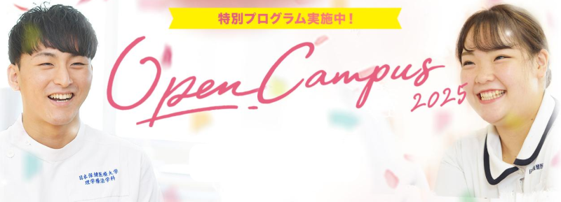 オープンキャンパス オープンキャンパス案内 開催カレンダー イベント一覧 オープンキャンパス案内 日本保健医療大学で“仕事”も“キャンパスライフ”もまるっと体験しよう! 開催日から選ぶ ご希望の日にちを選択してください。 選択した日にちに開催しているイベントの一覧画面が表示されます。 1=イベントあり 随時開催のオープンキャンパスイベントはこちら オープンキャンパス イベント一覧 日本保健医療大学をもっと知るなら! パンフレットを追加する 学校TOP 学部・学科・コース 入試方法 学費・奨学金 オープンキャンパス 最近チェックした学校 田園調布学園大学 神奈川県 仙台ウェディング&ブライダル専門学校 宮城県 バンタン芸術学院大学部 東京都 大谷大学 京都府 栃木介護福祉士専門学校 栃木県 大阪建設専門学校 大阪府 大阪ベルェベルビューティ&ブライダル専門学校 (2027年4月入学者より大阪ベルェベル美容専門学校へ合併予定) 大阪府 ESPギタークラフト・アカデミー 東京都 この学校を見た人はこちらの学校も見ています 城西大学 埼玉県 周りの人と協力できる力 新しいものを創発できる力 「協創力」を合言葉に「ともに育ちあう大学」をめざします。 PR 武蔵野学院大学 埼玉県 「他者理解」で学ぶ、コミュニケーションの英語 PR 浦和大学 埼玉県 人を支える力を育む PR Close 大学・短期大学 かんたん資料請求 専門学校・その他 かんたん資料請求 TOP