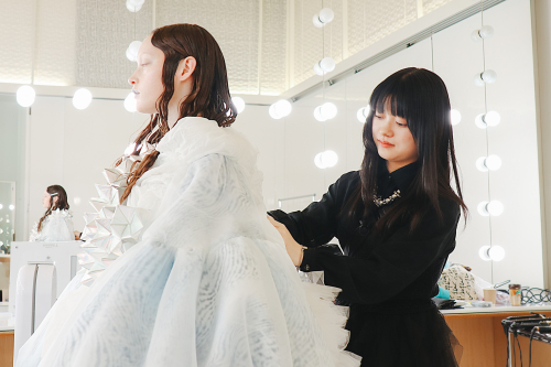 そして日本の最先端「東京コレクション」でのランウェイショーの実施や裏方でのフィッターのインターンシップ、素材産地のプロに学び共同で作品を作り出す産学官連携プロジェクトの実施数が圧倒的に多いこと。