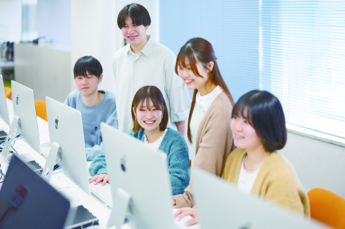 企業ロゴデザインや公式キャラクター制作、CMナレーション協力、映像制作など産学官連携を中心とした実践教育を通して、質の高い職業人材の育成を行い、各種資格取得、コンペ入賞など「ONLY1、No.1」の教育実績を数多く輩出しています。