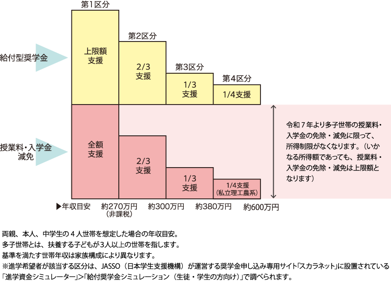 ⇒詳しくは令和7年度からの奨学金制度の改正(多子世帯の大学等の授業料等無償化)(PDF)で確認してください。
